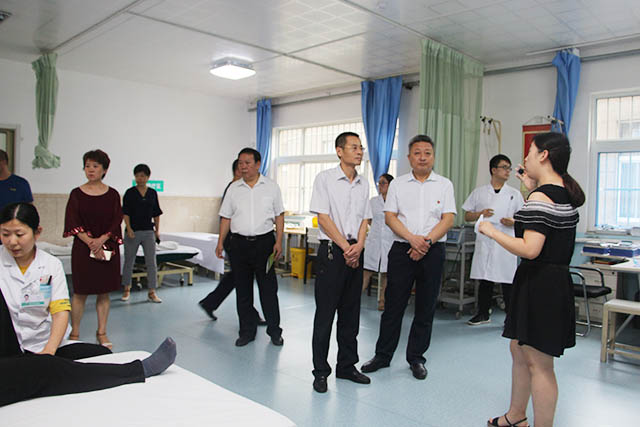 8月8日下午,昌樂縣黨委委員、衛(wèi)計局副局長王琳,昌樂縣各級各類醫(yī)療機構(gòu)、養(yǎng)老院一行參觀考察我院醫(yī)養(yǎng)結(jié)合工作,負責濰城區(qū)醫(yī)養(yǎng)結(jié)合工作的區(qū)衛(wèi)計局黨委委員、區(qū)計生協(xié)會會長韓建偉和區(qū)計生管理科科長馮永勝陪同,我院副院長鄒晨容,院長助理孫春梅、劉偉接待來訪并陪同考察。