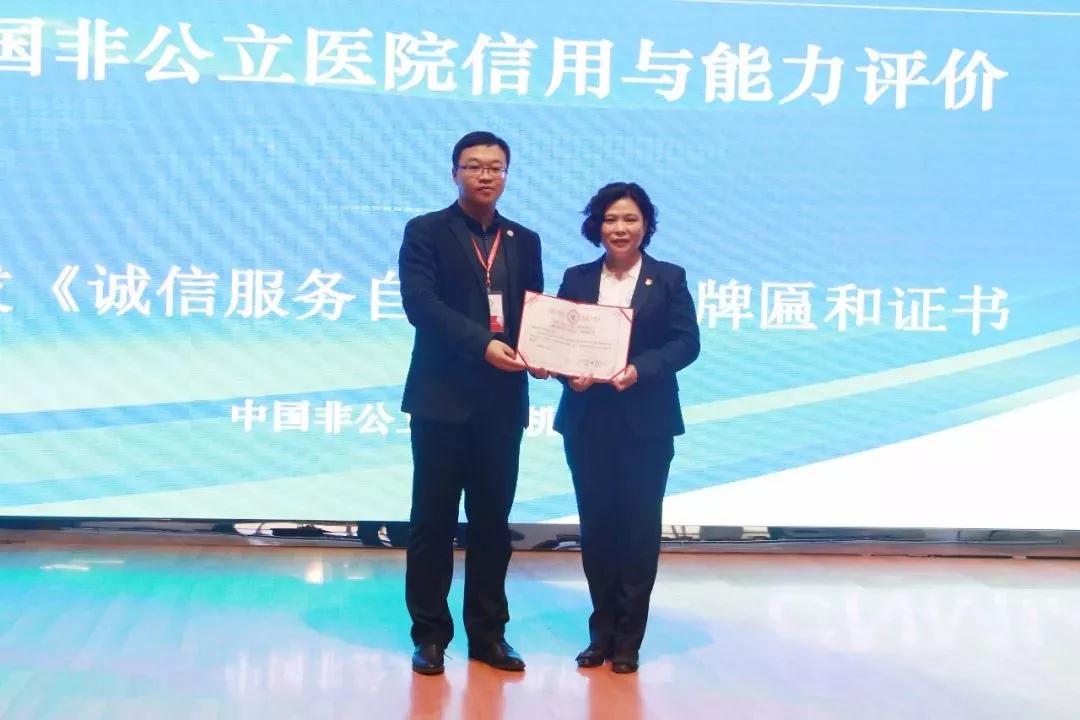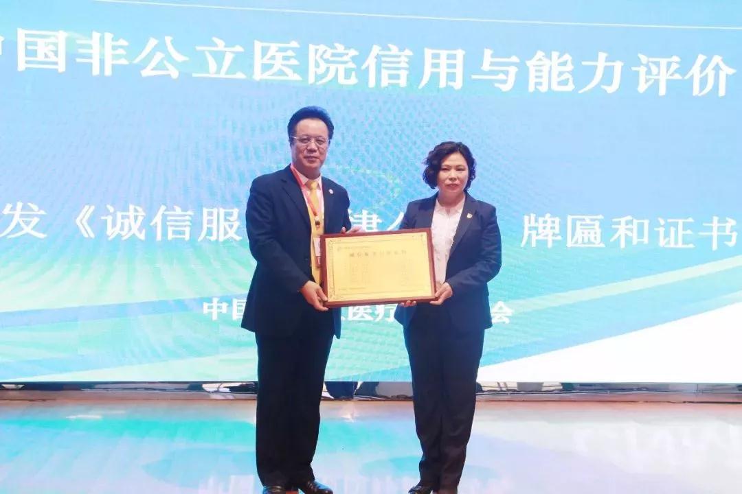 中國非公立醫(yī)療機構協(xié)會評價專家組大組長楊有業(yè)向醫(yī)院頒發(fā)中國非公立醫(yī)療機構協(xié)會“誠信服務自律公約”牌匾