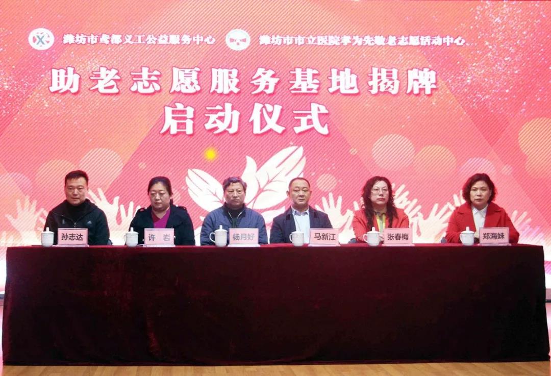 最后,鳶都義工公益服務(wù)中心理事長孫志達(dá)和濰坊市市立醫(yī)院黨委書記、院長鄭海妹共同為助老志愿服務(wù)基地揭牌。濰坊市市立醫(yī)院孝為先敬老志愿活動中心與濰坊市鳶都義工公益服務(wù)中心助老志愿服務(wù)基地揭牌儀式圓滿結(jié)束。