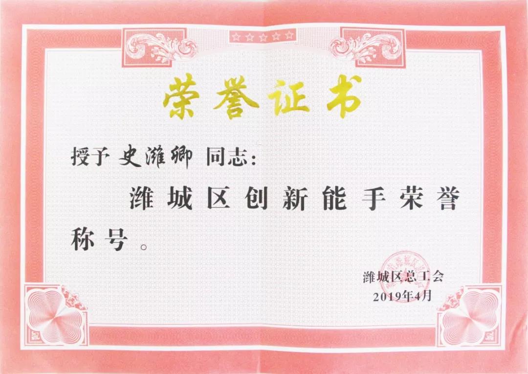 中醫(yī)科主任史濰卿被授予濰城區(qū)“創(chuàng)新能手”稱號