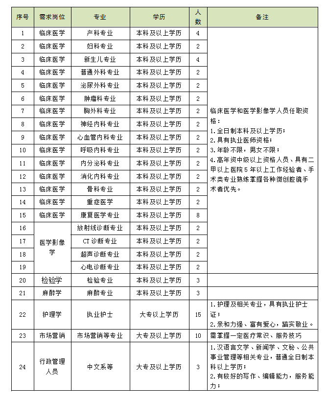 根據(jù)醫(yī)院總體規(guī)劃和發(fā)展建設(shè)需要,向社會(huì)公開(kāi)招聘82名工作人員?,F(xiàn)將有關(guān)事項(xiàng)公告如下: