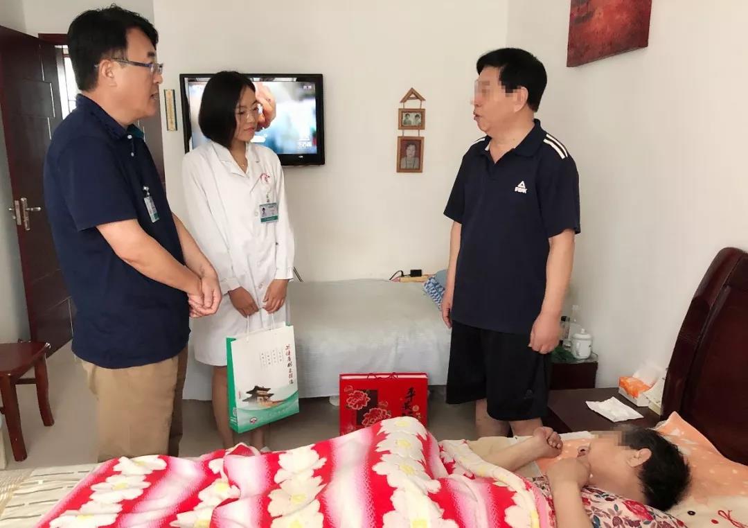 程阿姨今年68歲,患有先天性癲癇,糖尿病、冠心病、高血壓病史多年,右側(cè)股骨頭骨折病史2年,長期臥床。9月11日,醫(yī)院黨委書記、董事長鄭海妹帶領(lǐng)院長助理、護(hù)理部主任孫春梅,醫(yī)養(yǎng)康護(hù)中心李雯主任登門看望程阿姨,并送上月餅禮盒,帶去市立醫(yī)院對(duì)老人節(jié)日的問候和衷心的祝福,老人激動(dòng)的說:"市立醫(yī)院醫(yī)生的居家服務(wù)不但細(xì)致入微,非常用心,而且市立醫(yī)院領(lǐng)導(dǎo)對(duì)我們這些居家老人又這么關(guān)心,我們真的是非常感動(dòng),真心感謝市立醫(yī)院"。
