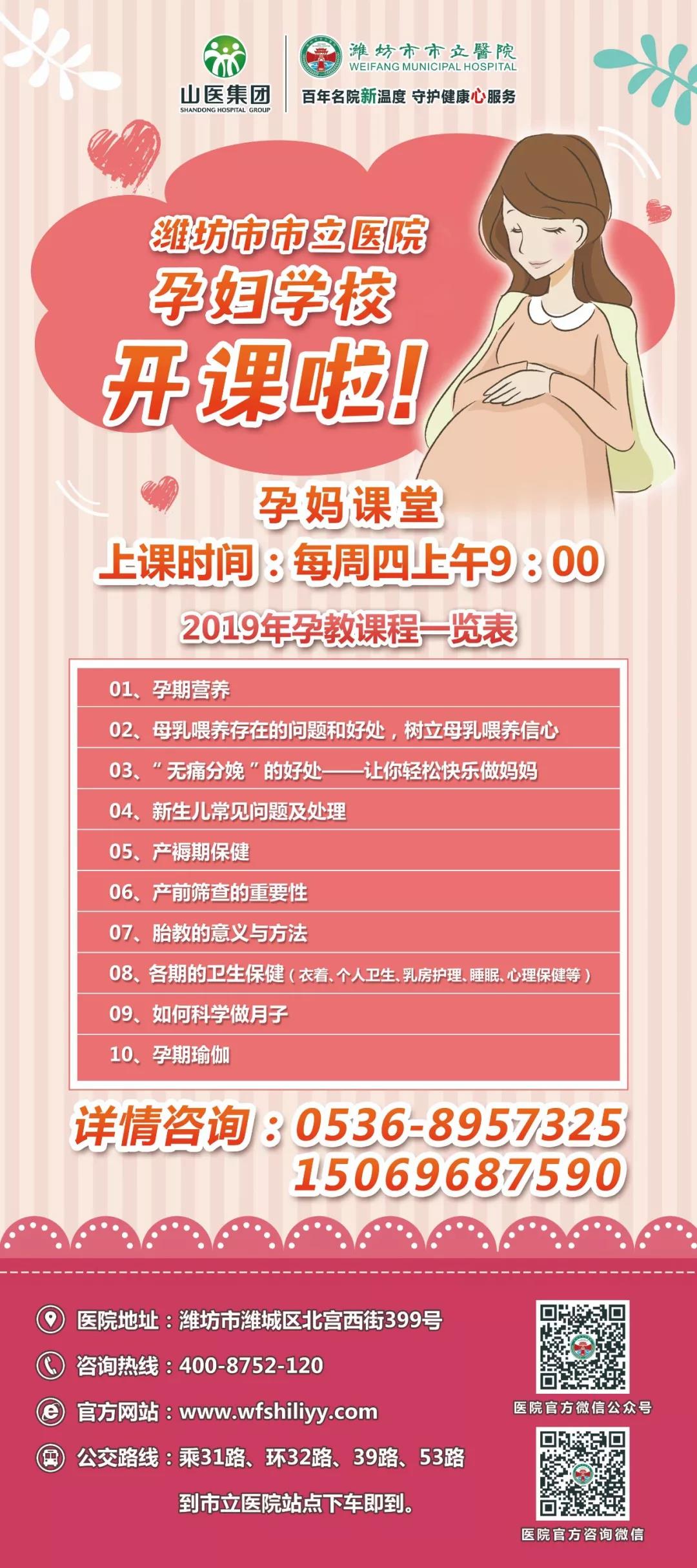 濰坊市市立醫(yī)院婦產(chǎn)科孕婦學(xué)校,為廣大孕媽媽提供孕育指導(dǎo)服務(wù),為眾多孕媽媽開設(shè)并提供專業(yè)的保健知識服務(wù),此次講座內(nèi)容非常充實,包含了備孕期、孕早期、孕中期、孕晚期、育兒期大量的營養(yǎng)知識,孕婦學(xué)校將通過專業(yè)的講解與孕婦實踐相結(jié)合,解決準媽媽孕育過程中的問題、找到困惑的答案,讓準媽媽們體會到育兒的快樂。據(jù)悉,濰坊市市立醫(yī)院婦產(chǎn)科孕婦學(xué)校每周四都會開展孕婦學(xué)?;顒樱瑸闇蕥寢屩v解母嬰健康知識、解疑答惑,我們真誠地邀請廣大孕媽媽們加入到孕育學(xué)習(xí)的隊伍中!
