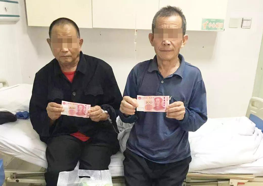 和潘大爺住在同病室的退休老干部張大爺因七天前無明顯原因及誘因出現(xiàn)肛周腫物疼痛不適,肛門脫出腫物、還納困難慕名找到了我院肛腸科主任宋進(jìn)忠,宋主任認(rèn)真分析了患者病情以“直腸粘膜脫垂  環(huán)狀混合痔”收入我院肛腸科治療(現(xiàn)已成功進(jìn)行手術(shù)治療,近日出院)。張大爺在與潘大爺幾天的相處之中,了解到潘大爺及同伴都是在福利院居住,經(jīng)濟(jì)條件困難,除了保障基本的醫(yī)療救治費用以外沒有多余的錢補(bǔ)充營養(yǎng),9月26日,剛做完治療的張大爺回到病房看到潘大爺和同伴正在吃饅頭和咸菜,張大爺看到同樣是古稀之年老人的境遇,看在眼里、放在心里,在自己女兒不在病房間隙,便把身上僅有的100元現(xiàn)金給了潘大爺和同伴用來補(bǔ)充營養(yǎng)。