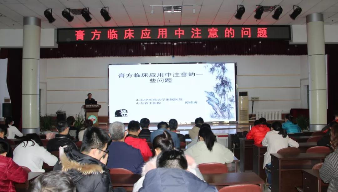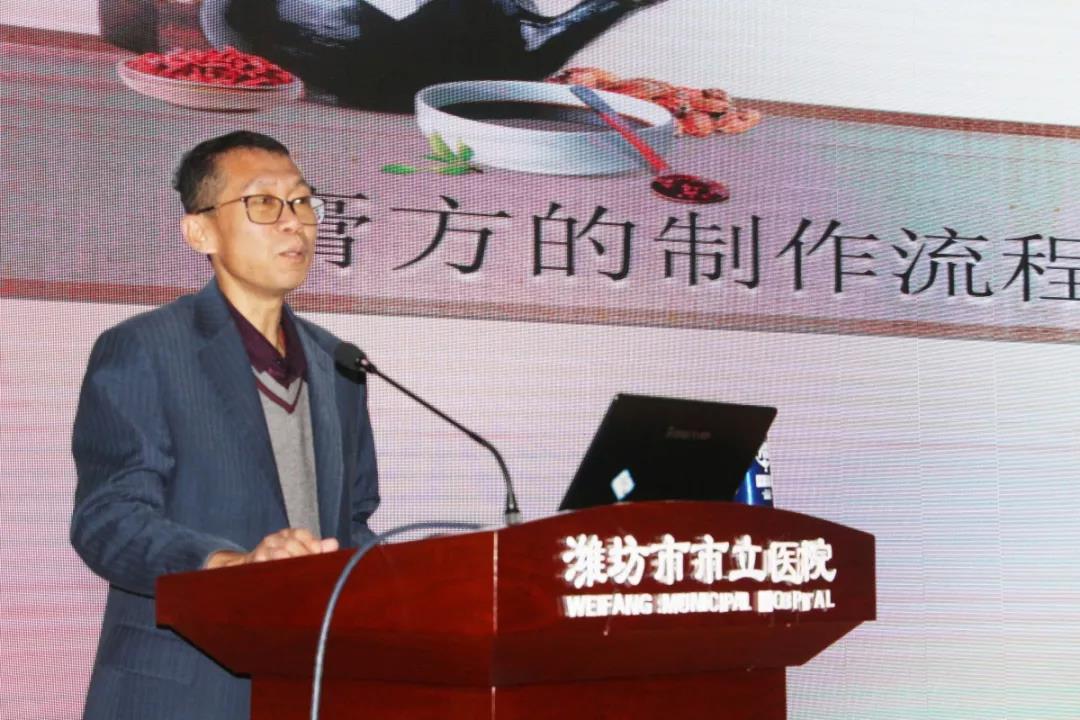 山東省中醫(yī)藥重點(diǎn)學(xué)科帶頭人胡永學(xué)教授以《膏方的制作流程及功效》為題進(jìn)行了授課。