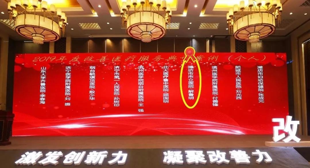 近日,由國家衛(wèi)生健康委醫(yī)政醫(yī)管局和健康報社舉辦的“2019年度改善醫(yī)療服務(wù)典型經(jīng)驗交流推廣會”在北京隆重舉行,大會主題為“激發(fā)創(chuàng)新力 凝聚改善力”,會議對2019年度改善醫(yī)療服務(wù)十大亮點(diǎn)單位,2019年度改善醫(yī)療服務(wù)典型案例、科室、個人進(jìn)行了表彰,其中濰坊市市立醫(yī)院榮獲“2019年度改善醫(yī)療服務(wù)典型案例”先進(jìn)醫(yī)院稱號,心血管科榮獲“2019年度改善醫(yī)療服務(wù)典型案例”先進(jìn)科室稱號,副院長、微創(chuàng)手術(shù)中心首席專家、外科主任兼泌尿外科主任解魯明主任醫(yī)師榮獲“2019年度改善醫(yī)療服務(wù)典型案例”先進(jìn)個人稱號,山醫(yī)集團(tuán)副主席、濰坊市市立醫(yī)院院長靳清漢,副院長解魯明,心內(nèi)科主任王孝順參加了此次大會。