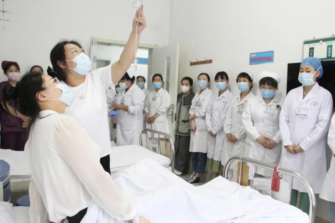 隨即演練場(chǎng)景展開(kāi),責(zé)任護(hù)士更換液體時(shí)未仔細(xì)核對(duì)患者信息,家屬發(fā)現(xiàn)換錯(cuò)液體后呼叫護(hù)士。