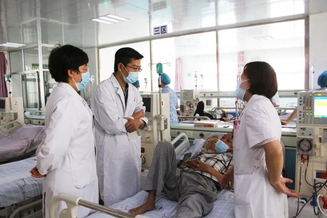 門診工作結(jié)束后,邵樂(lè)平教授在副院長(zhǎng)鄒晨容、腎內(nèi)科副主任王廷珍等醫(yī)護(hù)人員的陪同下,來(lái)到血液透析中心,對(duì)幾位危重、疑難病患進(jìn)行重點(diǎn)查房,主管醫(yī)生詳細(xì)匯報(bào)了患者病史、目前治療方案及治療情況,邵教授對(duì)每位患者進(jìn)行檢查,進(jìn)一步了解患者病情狀況,針對(duì)不同患者的病情提出了系統(tǒng)化的康復(fù)治療方案。
