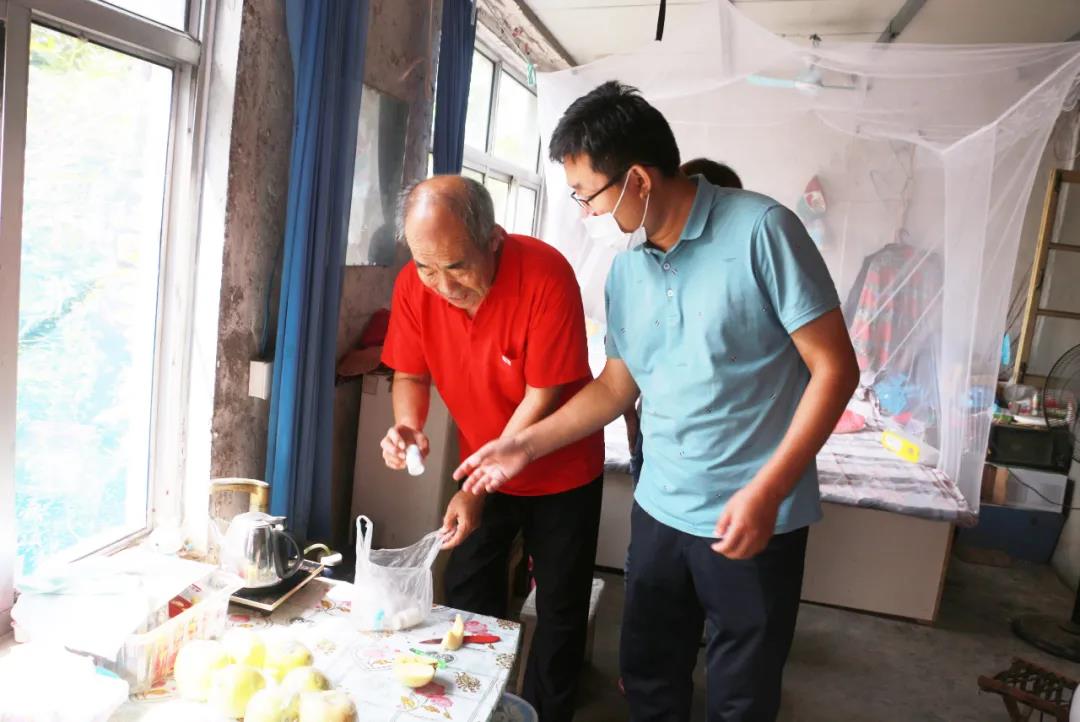 進(jìn)入于大爺果園后,他的家人便熱情接待了我們,徐遵敬副主任細(xì)心詢問(wèn)了患者出院后的康復(fù)情況及日常生活習(xí)慣,除了再次進(jìn)行了冠心病飲食、睡眠、服藥、鍛煉等健康指導(dǎo)外,還針對(duì)其血糖高的情況進(jìn)行了耐心的用藥指導(dǎo),強(qiáng)調(diào)了血糖高在日常生活中應(yīng)該注意的事項(xiàng)??头肯囡L(fēng)英為于大爺及其老伴進(jìn)行了血壓測(cè)量,并囑咐他們保持愉悅的心情,定期到醫(yī)院進(jìn)行復(fù)診,倡導(dǎo)健康的生活方式