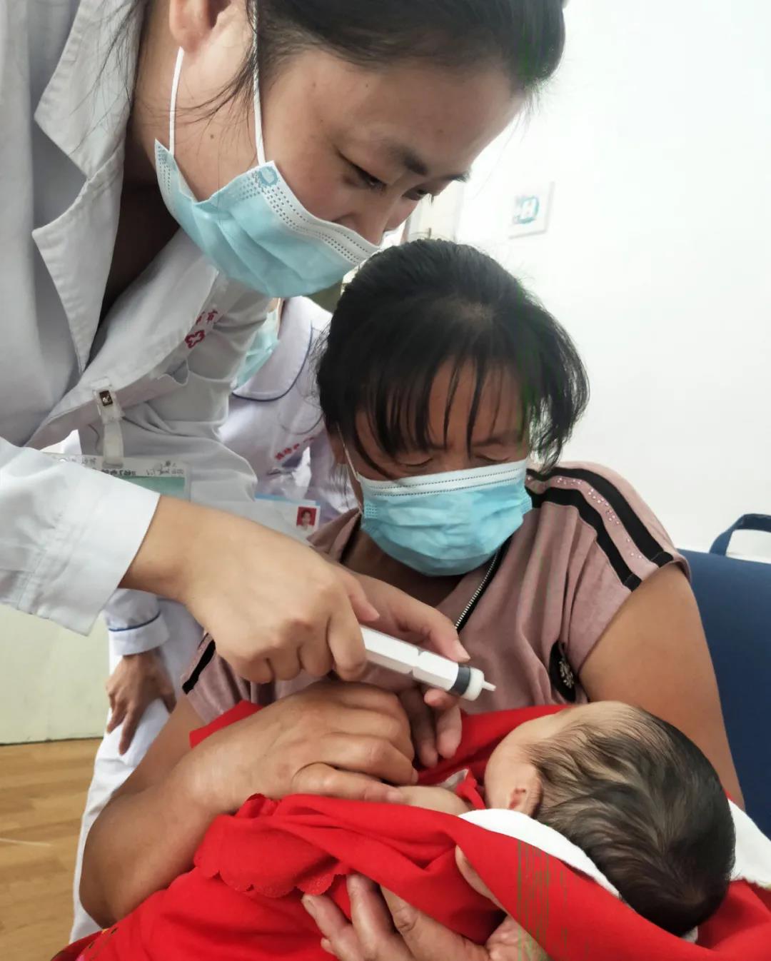 不知道是因為對陌生的環(huán)境感到不安,還是因為饑餓,孩子一直哭。寶寶哭紅的眼睛、令人揪心的哭聲牽動著每個人的心。聽到孩子的哭聲,正處于哺乳期的護(hù)士鄒順順不由紅了眼眶,她征得患兒家屬的同意,給孩子擠了40ml的母乳,用注射器喂孩子吃奶,小患兒漸漸平靜下來,讓患兒的家屬十分感激,患兒吃完母乳后一會兒就大便了,留好標(biāo)本便去化驗。