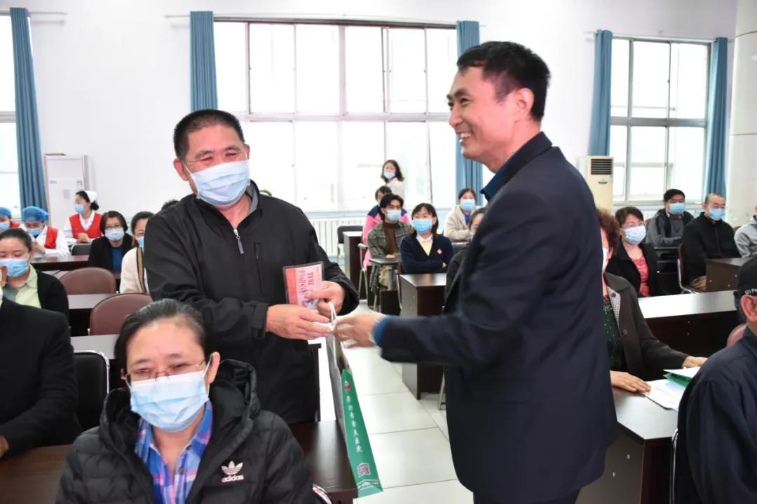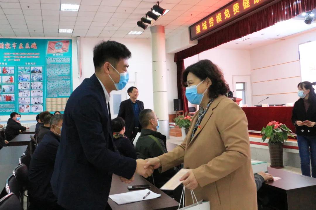 啟動(dòng)儀式的最后,領(lǐng)導(dǎo)們親自為勞模代表發(fā)放了濰坊市市立醫(yī)院免費(fèi)體檢卡和紀(jì)念品,并同他們合影留念。