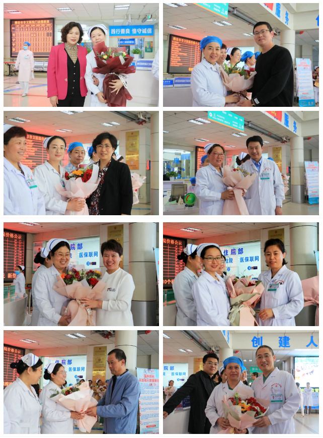 2021年5月12日是110個(gè)國(guó)際護(hù)士節(jié),為表示對(duì)護(hù)理團(tuán)隊(duì)的關(guān)心關(guān)愛,激勵(lì)護(hù)理人員更好的立足崗位、扎實(shí)工作,5月12日上午,醫(yī)院黨委書記、院長(zhǎng)鄭海妹,副董事長(zhǎng)陳安龍,副院長(zhǎng)鄒晨容、解魯明、孫春梅、劉偉等院領(lǐng)導(dǎo)帶領(lǐng)院工會(huì)、護(hù)理部等科室負(fù)責(zé)人,為全院各臨床護(hù)理單元送上美麗的鮮花和節(jié)日的祝福,表達(dá)對(duì)醫(yī)院大家庭中每一位辛勤工作的護(hù)理工作者默默堅(jiān)守、無(wú)私奉獻(xiàn)的感謝和慰問。