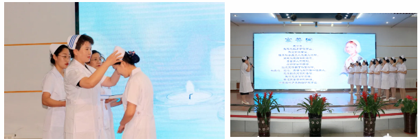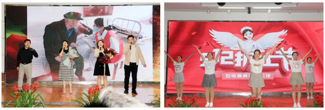 表彰結束后,在李兵、周海杰的主持中,表演環(huán)節(jié)拉開帷幕。莊嚴神圣的授帽儀式,護理后繼者們帶著青春的朝氣,懷著為護理事業(yè)奮斗終身的信念,在護理前輩殷切目光的注視下,帶上了圣潔的燕帽;副院長孫春梅帶領年輕護士宣誓,重溫南丁格爾誓詞;《最親的人》、《仰望星空》等歌曲,讓優(yōu)美的歌聲和旋律久久縈繞耳旁;現(xiàn)代舞和漢服秀,流行元素與中國古典美激烈碰撞,這是護士姐妹們的青春姿態(tài);護理部及護士長們合唱的《中國護士之歌》,振奮人心,展現(xiàn)了醫(yī)務工作者昂揚向上、大愛無疆的精神風貌。一個又一個節(jié)目精彩紛呈,將大會現(xiàn)場的氣氛推向了高潮,贏得了臺下觀眾陣陣掌聲和喝彩。