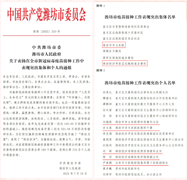 戰(zhàn)“疫”防“疫” 表現(xiàn)優(yōu)異 | 濰坊市委市政府關于表揚疫苗接種工作表現(xiàn)突出的集體和個人名單出爐!