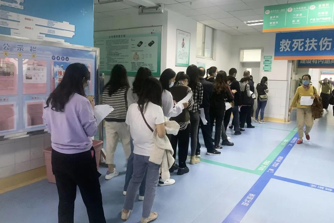 上午7:30,老師們陸續(xù)來(lái)到醫(yī)院,有序排隊(duì)等候,醫(yī)院體檢中心、檢驗(yàn)科、放射科、超聲科、心電圖室等科室醫(yī)務(wù)工作者正在為教師進(jìn)行健康體檢,現(xiàn)場(chǎng)繁忙而有序。本次共有血壓測(cè)量、內(nèi)科、外科、婦科(女)、血常規(guī)、尿常規(guī)、心電圖、彩超、胸部拍片等體檢項(xiàng)目。通過有針對(duì)性項(xiàng)目的檢查,能夠讓每位教師了解自己的健康狀況,做到“無(wú)病早預(yù)防,有病早治療”。