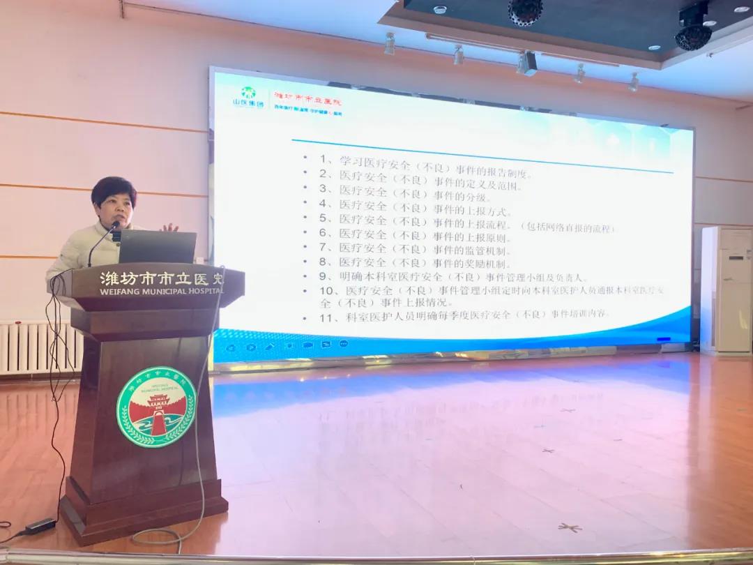 院長(zhǎng)助理張言就醫(yī)療安全(不良)事件的報(bào)告制度、定義、分級(jí)、上報(bào)方式、上報(bào)流程、上報(bào)原則、監(jiān)管機(jī)制、獎(jiǎng)勵(lì)機(jī)制等方面進(jìn)行了詳細(xì)解讀,她強(qiáng)調(diào),通過了解“錯(cuò)誤”,提高對(duì)“錯(cuò)誤”的識(shí)別能力和“免疫”能力,避免同樣的錯(cuò)誤反復(fù)發(fā)生于不同的部門或個(gè)人,大家要主動(dòng)上報(bào)不良事件,積極預(yù)防,確保醫(yī)療安全,最大限度地控制、減少因不良事件引起的危害。