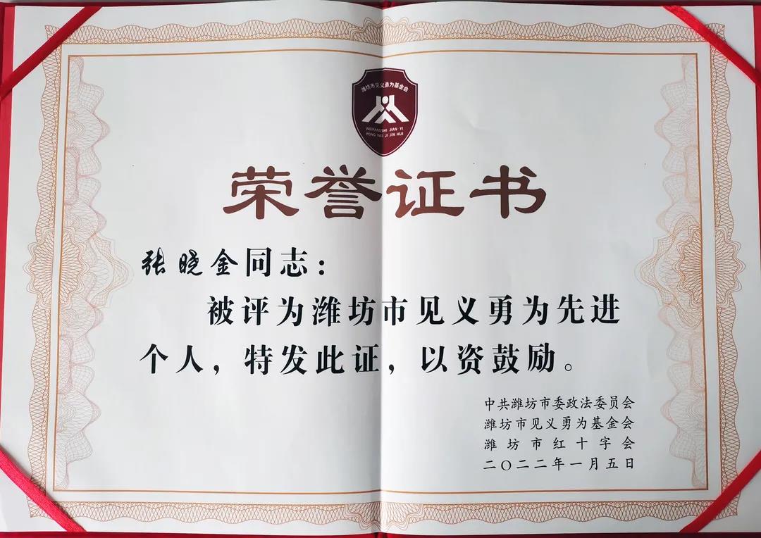 捐獻造血干細胞 用生命影響生命——我院職工榮獲“濰坊市見義勇為先進個人”榮譽稱號