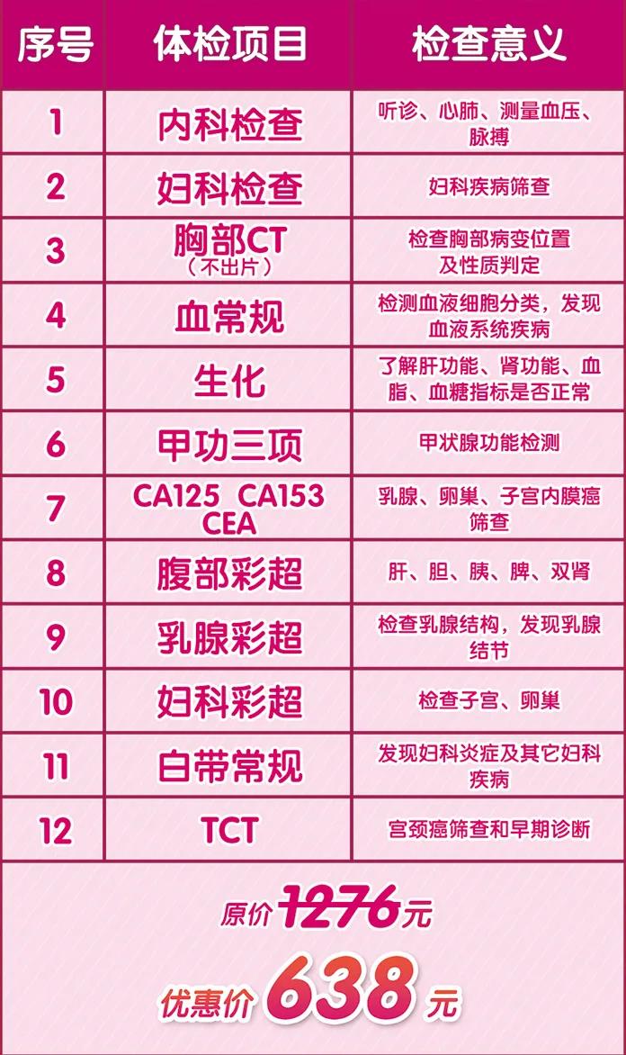 查 “女性精英體檢套餐”